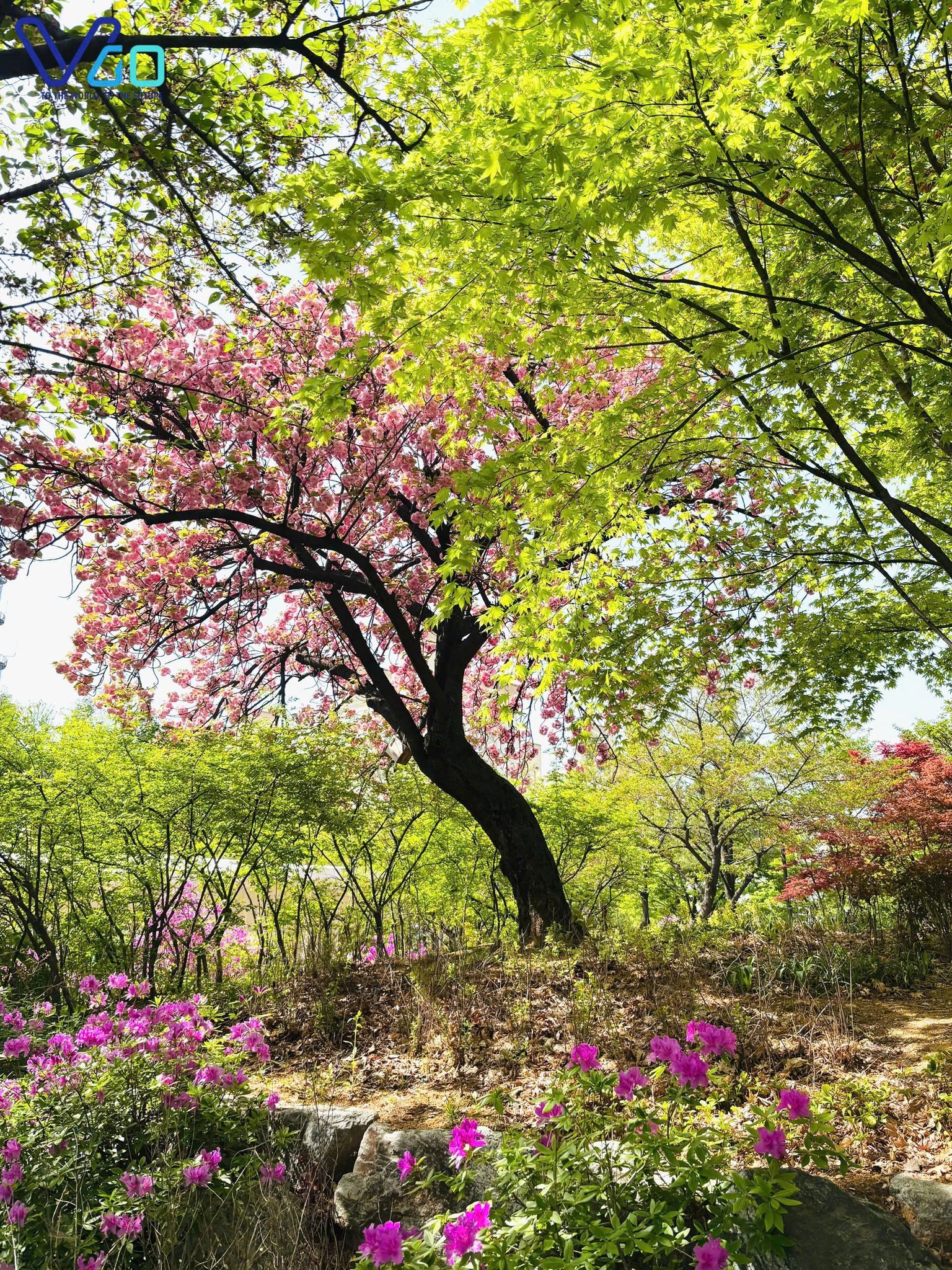 Giữa một góc nhỏ tại 경주, những chùm hoa anh đào kép nở rộ, dày hơn, đậm hơn và cũng dịu dàng hơn theo một cách rất riêng…